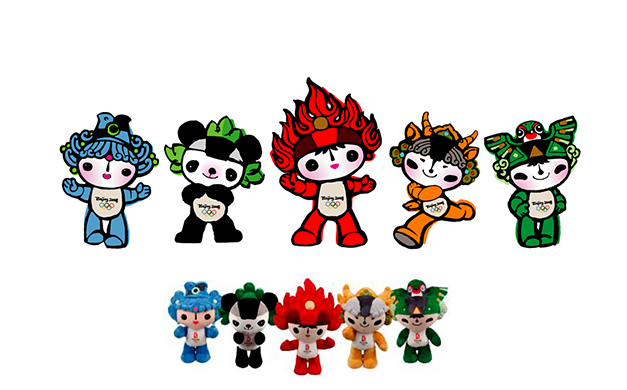 Agrupando os nomes dos mascotes, é formada a frase “Bem-vindo a Pequim”. E o quinteto é chamado de Fuwa (“bonecos de boa sorte”).