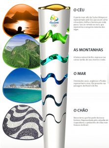Cada cidade-sede desenvolve o design da tocha com base em características regionais. Para 2016, a peça tem cinco segmentos que se expandem e trazem cores diferentes, simbolizando o céu, as montanhas, o mar e o chão.
