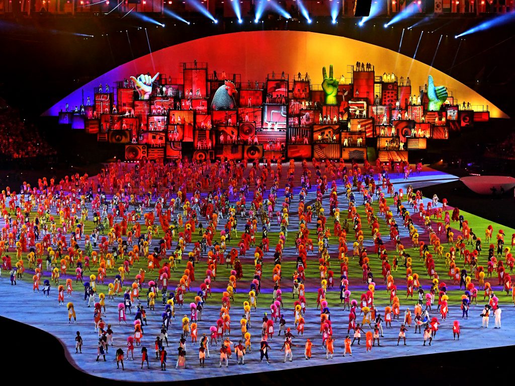 Durante o período o Rio de Janeiro recebeu mais de 10 mil atletas de 206 países. A maioria das disputas foram realizadas nas 32 arenas espalhadas pela cidade, com exceção do futebol, que também teve partidas nas cidades de Belo Horizonte, Brasília, Manaus, Salvador e São Paulo.