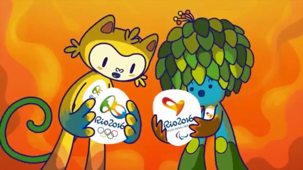 Outro símbolo que representou os Jogos Olímpicos do Rio foi o mascote. Vinícius é um animal que nasceu da mistura de diversos bichos da fauna brasileira. O nome é inspirado no poeta e compositor Vinícius de Morais e foi escolhido pela população por meio de uma votação. Já Tom é o mascote das Paraolimpíadas, uma homenagem a Tom Jobim, ícone da Bossa Nova, e à fauna brasileira.
